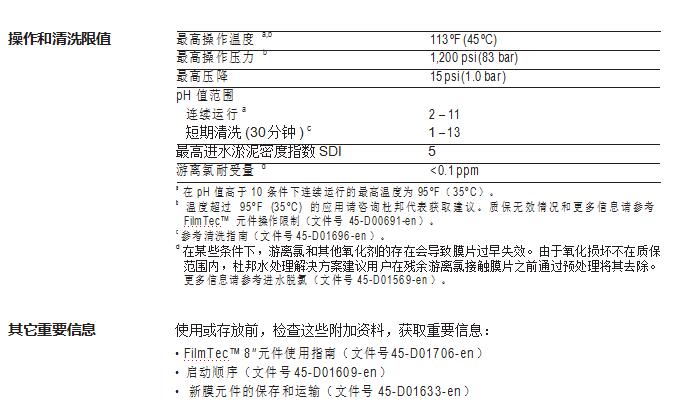 • 無需進行氧化后處理保證了在整個運行周期內都能保持高性能。FilmTec™ 元 件更耐用,且能在更寬泛的 pH 值范圍(1-13)內進行化學清洗。