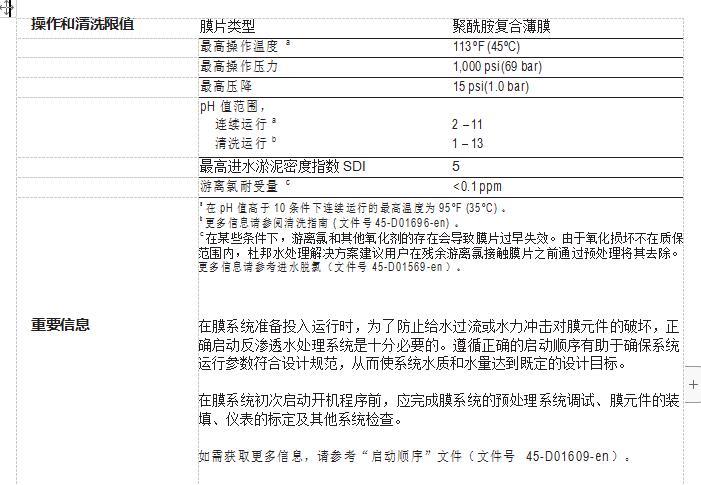 • SW30HRLE-4040 元件在制造過程中沒有像其他元件制造商那樣采用氧化性的 后處理工藝提高短時的初始性能,因而能在長期運行中一直保持高性能。這 是為什么 FilmTec™ 膜元件比其他品牌經(jīng)久耐用,可在更寬的 pH 范圍(1~13) 內(nèi)進(jìn)行更有效的化學(xué)清洗的關(guān)鍵原因之一。