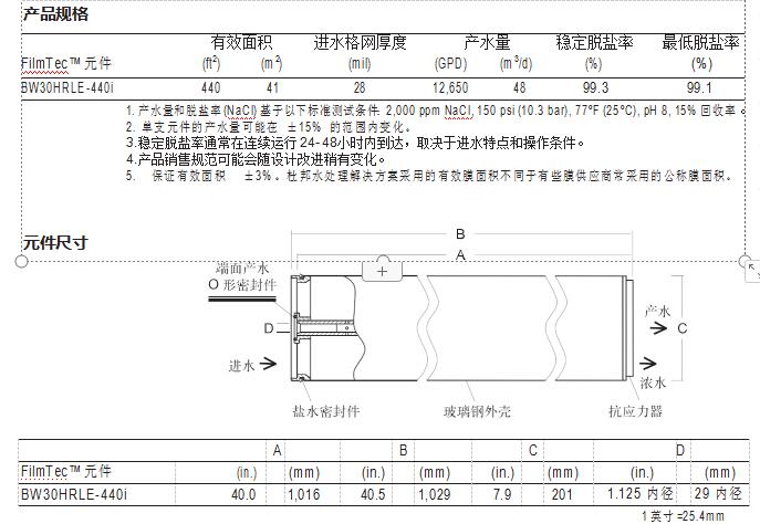 FilmTec™ BW30HRLE-440i 元件經(jīng)證明,具有優(yōu)異的性能: