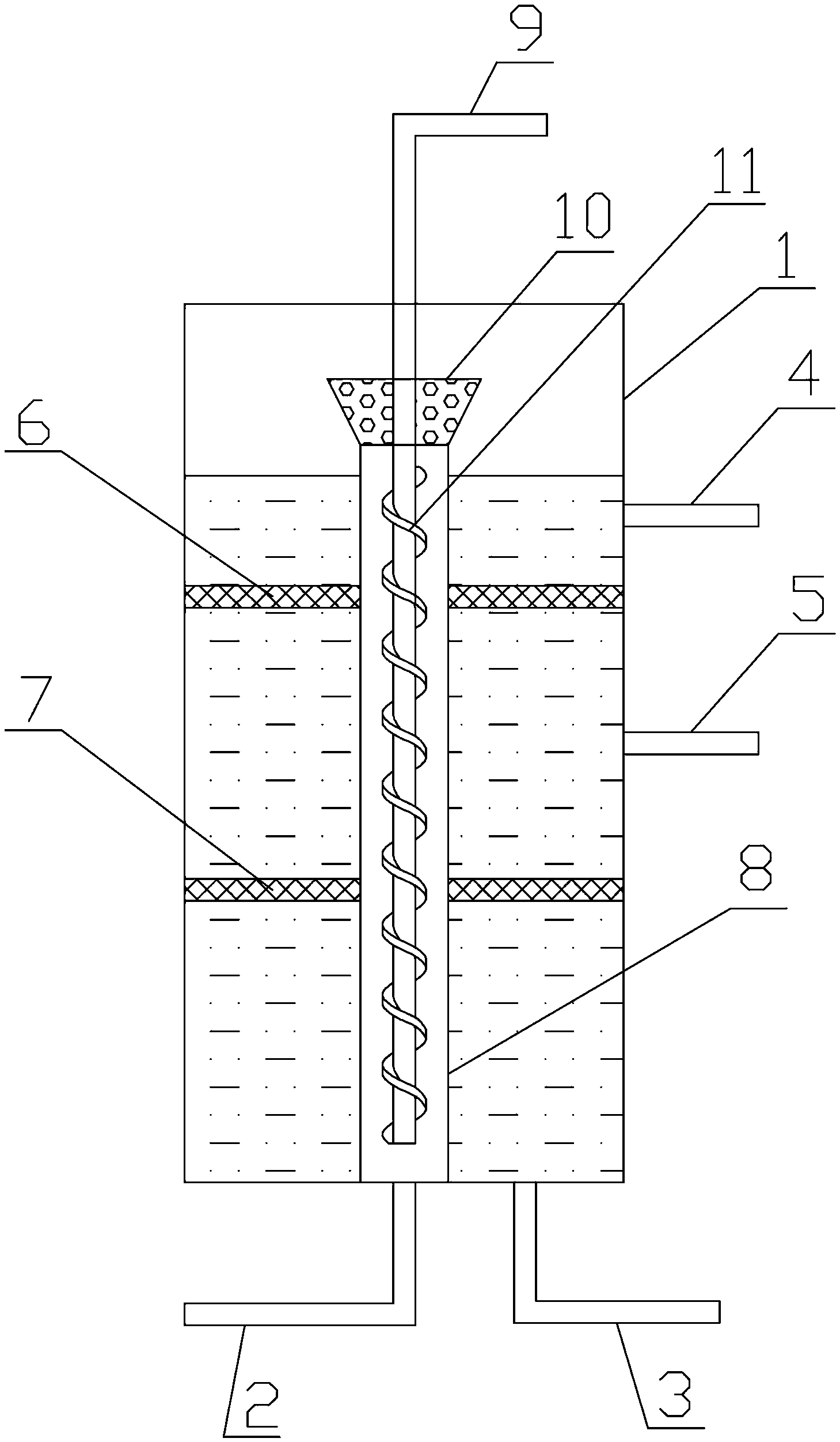 2.根據(jù)權(quán)利要求1所述的雙甘膦廢水的處理裝置,其特征在于:所述中心管(9)外側(cè)設(shè)有螺旋板(11)。
