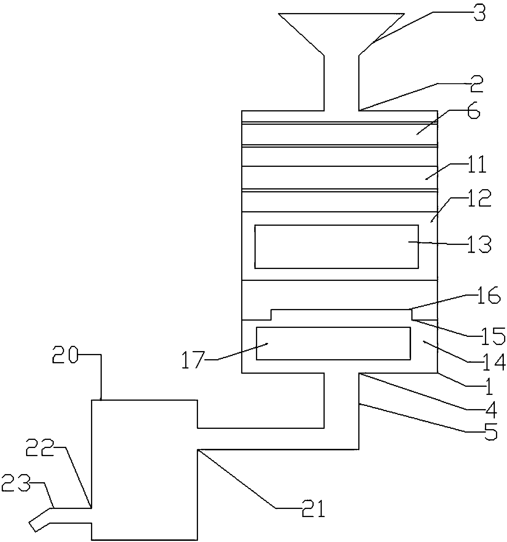 10.根據權利要求1所述的一種小型智能污水處理裝置,其特征在于,所述水質監測器(17)能夠測量三次過濾的水中的雜質多少,當達到飲用狀態時將數據傳輸到控制器(24)內。