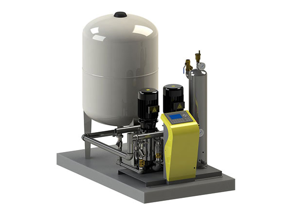 LJ系列定壓補水脫氣機組能夠實現:定壓、自動補水、膨脹泄水、真空脫氣四種功能,特別適合于暖通空調密閉循環水系統,可選擇變頻控制型或膨脹罐型。