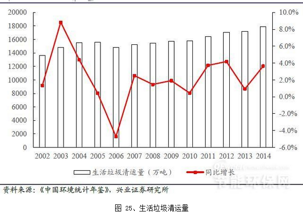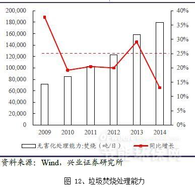 固廢處理:1)垃圾焚燒行業(yè)整體進(jìn)入運(yùn)營(yíng)期:2014 年全國(guó)垃圾焚燒處理能力增長(zhǎng)達(dá)到13%,相比于此前25%的5 年復(fù)合增長(zhǎng)率出現(xiàn)明顯下滑。從行業(yè)長(zhǎng)期發(fā)展邏輯看,原有填埋場(chǎng)容量趨于飽和,地價(jià)上漲降低政府新建填埋場(chǎng)的驅(qū)動(dòng)力,未來(lái)焚燒占比將逐年上升。過(guò)去幾年是垃圾焚燒項(xiàng)目的建設(shè)高峰期,企業(yè)跑馬圈地,考驗(yàn)的是企業(yè)的拿單能力。目前垃圾焚燒產(chǎn)業(yè)從建設(shè)期逐漸步入運(yùn)營(yíng)期,對(duì)企業(yè)的運(yùn)營(yíng)能力、項(xiàng)目選擇能力、成本控制能力提出了更高的要求。2)看好工業(yè)固廢處理:2013 年,一般工業(yè)固廢、工業(yè)危險(xiǎn)廢物處臵利用率分別達(dá)到87.2%、74.8%,均低于生活垃圾無(wú)害化處理率89.3%。從實(shí)際經(jīng)驗(yàn)來(lái)看,大量工業(yè)固廢由于監(jiān)管不嚴(yán)(例如靖江市侯河石油化工廠長(zhǎng)期、大量非法填埋危險(xiǎn)廢物等),并未納入統(tǒng)計(jì)范圍,實(shí)際工業(yè)危廢處理率可能低于環(huán)保部的統(tǒng)計(jì)數(shù)字。3)板塊增速:13、14、15 年扣非業(yè)績(jī)同比增長(zhǎng)15%、34%、6%。生活垃圾焚燒行業(yè)整體增速下行。