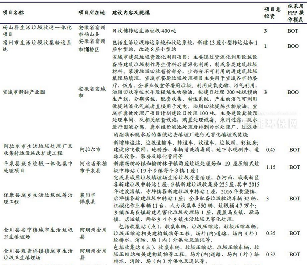發(fā)改委第二批推介的PPP環(huán)衛(wèi)項(xiàng)目投資規(guī)模22億元,市場(chǎng)化大幕開(kāi)啟。2015年12月,發(fā)改委管網(wǎng)公布第二批推介的PPP項(xiàng)目。我們統(tǒng)計(jì)其中環(huán)衛(wèi)相關(guān)訂單投資規(guī)模22億元,市場(chǎng)化大幕開(kāi)啟,后續(xù)市場(chǎng)空間持續(xù)釋放。啟迪桑德在手環(huán)衛(wèi)項(xiàng)目個(gè)數(shù)接近100個(gè);龍馬環(huán)衛(wèi)近期簽訂了海口市龍華區(qū)環(huán)衛(wèi)一體化PPP項(xiàng)目(年運(yùn)營(yíng)費(fèi)為2.34億元)、遼寧渾南項(xiàng)目,(年運(yùn)營(yíng)費(fèi)約1.46億元)。