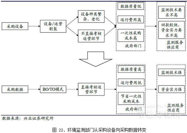 環(huán)境監(jiān)測(cè)部門(mén)從采購(gòu)設(shè)備向采購(gòu)數(shù)據(jù)模式轉(zhuǎn)變,利好監(jiān)測(cè)技術(shù)強(qiáng),資金實(shí)力強(qiáng)的公司。