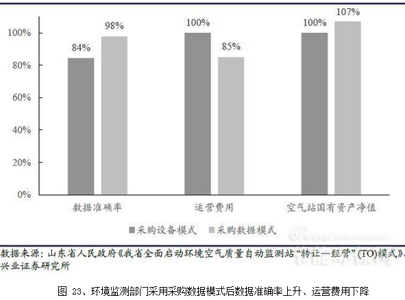 采購(gòu)數(shù)據(jù)模式下,利好監(jiān)測(cè)技術(shù)強(qiáng),資金實(shí)力強(qiáng)的公司。1)監(jiān)測(cè)技術(shù)強(qiáng):采購(gòu)設(shè)備模式下,監(jiān)測(cè)服務(wù)供應(yīng)商只負(fù)責(zé)提供設(shè)備,不直接負(fù)責(zé)監(jiān)測(cè)數(shù)據(jù)的準(zhǔn)確性。因而,部分運(yùn)行質(zhì)量不穩(wěn)定、老化的設(shè)備也能得到出售。采購(gòu)數(shù)據(jù)模式下,監(jiān)測(cè)服務(wù)供應(yīng)商直接負(fù)責(zé)監(jiān)測(cè)數(shù)據(jù)的準(zhǔn)確性,政府機(jī)構(gòu)利用移動(dòng)監(jiān)測(cè)站對(duì)采購(gòu)的環(huán)境監(jiān)測(cè)數(shù)據(jù)整體對(duì)比,只有檢測(cè)技術(shù)強(qiáng),性價(jià)比好的企業(yè)才能獲得訂單。2)資金實(shí)力強(qiáng):山東省采購(gòu)數(shù)據(jù)模式下,運(yùn)營(yíng)單位將設(shè)備價(jià)值平攤在6 年的運(yùn)營(yíng)費(fèi)中,雖然緩解了政府部門(mén)、排污企業(yè)一次性采購(gòu)設(shè)備成本,但是監(jiān)測(cè)服務(wù)供應(yīng)商的現(xiàn)金流回收情況惡化了;對(duì)后者的資金實(shí)力提出了更高要求。