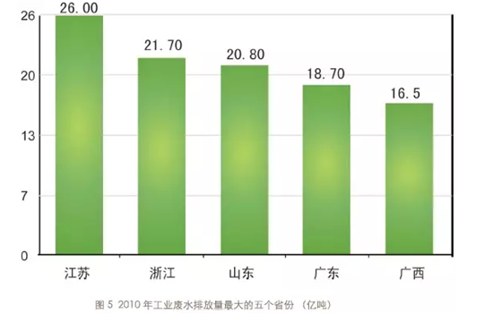 如圖1所示,造紙及紙制品業(yè),化學(xué)原料及化學(xué)制品制造業(yè),紡織業(yè),農(nóng)副食品加工業(yè),電力、熱力的生產(chǎn)和供應(yīng)業(yè)這五大行業(yè)占據(jù)了全國廢水排放總量的58%。