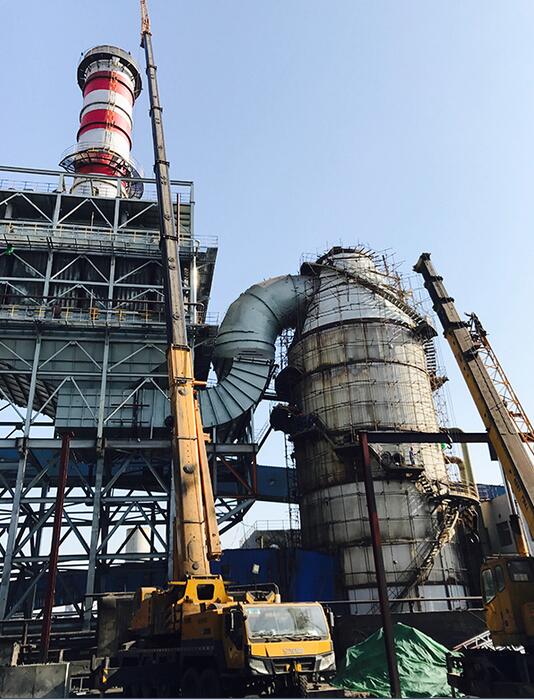 11月18日,新興鑄管公司正在高爐焦炭上料口處安裝集塵罩。