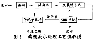 福建省某冷凍食品有限公司是一家主要生產烤鰻的中外合資企業,生產過程中排放的廢水主要含有血液。油脂、鰻魚內臟碎塊和醬油(調味品),可生化性較好。工程采用厭氧調節——SBR法廢水處理工藝,經2個月的調試運行后通過竣工驗收,監測結果表明,處理后出水符合GB8978——1996《污水綜合排放標準》中一級排放標準。