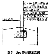 、蹍捬跸薏捎肔ipp技術(shù)進(jìn)行卷制。筒體材料采用不銹鋼復(fù)合高強(qiáng)度板卷制,在罐頂上部安裝有壓頂槽鋼,采用不銹鋼螺栓與筒體之間的定位,不采用焊接方式。筒體制作完成后,進(jìn)行罐內(nèi)的金屬結(jié)構(gòu)安裝。由于罐體為金屬結(jié)構(gòu),罐頂可在罐內(nèi)金屬結(jié)構(gòu)完成后再進(jìn)行安裝,這樣給罐內(nèi)的安裝工作帶來(lái)了極大的便利。厭氧罐內(nèi)設(shè)有布水器,布水器采用枝狀布水,隔3m2設(shè)有一個(gè)布水頭,布水較為均勻。三相分離器的安裝是罐內(nèi)金屬結(jié)構(gòu)安裝的重點(diǎn),由三個(gè)圓錐形正反斗組成,施工要求高、難度大。在施工中充分利用罐頂后施工的特點(diǎn),三個(gè)圓錐斗在外進(jìn)行拼接,然后到罐內(nèi)進(jìn)行安裝,降低了施工難度和勞動(dòng)強(qiáng)度,工程質(zhì)量也較容易控制,加快了工程進(jìn)度。安裝完成三相分離器和溢流槽后,進(jìn)行罐頂?shù)陌惭b施工工作。罐體保溫材料采用阻燃型的聚苯乙烯泡沫板,外殼采用彩色瓦楞鋼板,瓦楞鋼板采用特制的定位卡頭扁鋼定位,安裝效果良好。Lipp罐體與鋼筋混凝土之間的澆筑采用膨脹混凝土(見(jiàn)圖3)。