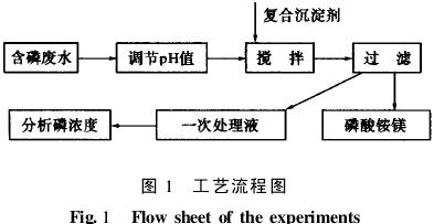 磷酸銨鎂是一種含有磷、銨和鎂的緩效復合肥,它在水中的溶解度很小,因而可以沉淀析出。本文以處理磷濃度較高的含磷廢水為背景,重點研究該工藝開發(fā)及其理論基礎(chǔ),為工業(yè)和生活廢水中用此法除磷提供基礎(chǔ)數(shù)據(jù)。