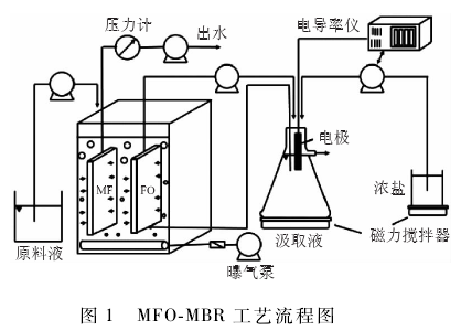 近年來,膜生物反應器(membrane bioreactor, MBR)由于具有出水水質好、占地面積小、剩余污泥少、操作管理方便等優點,在污水處理與回用領域得到了快速的推廣應用。然而,目前MBR仍然面臨著膜污染較重的問題,影響了工藝的經濟性和穩定性。2008年,國外學者提出了一種新型的MBR替代工藝,正滲透膜生物反應器( osmotic membrane bioreactor, OMBR)。OMBR采用正滲透(forward osmosis , FO)膜代替傳統MBR中使用的微濾( micro-filtration, MF)膜或超濾( ultra-filtration , OF)膜來實現泥水分離。由于FO過程借助兩側的滲透壓差而不是外加壓力作為驅動力,與MBR相比,OMBR具有工藝能耗低、膜污染趨勢小、出水水質可靠等優點。作為一種新型的污水處理方法,OMBR目前仍處于研究階段,遇到的瓶頸之一就是鹽度的積累。FO膜的高效截留和反向鹽擴散導致OMBR內鹽度大幅上升,直接造成滲透壓差的減少和FO膜通量的大幅衰減,同時對微生物活性產生不利影響。