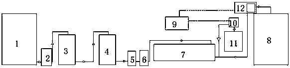 本實用新型具有工序簡單,自動化程度高,提高生產效率,降低生產成本等優點,保證了產品的質量,解決了傳統的純水處理系統存在的采用人工加料、人工測量會增加人力成本、測量精度較差以及每次配料因人而異等問題。